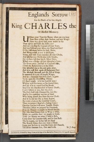 Englands sorrow for the death of his late Majesty King Charles the II. of blessed memory