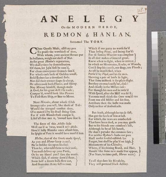 An Elegy on the modern heroe, Redmon ô Hanlan, surnamed the Tory