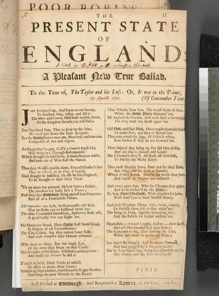 The present state of England: a pleasant new true ballad, to the tune of, The taylor and his lass: or, It was in the prime of coucumber time