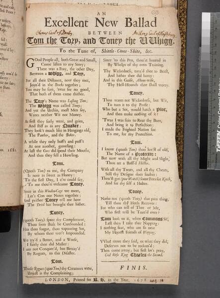An excellent new ballad between Tom the Tory, and Toney the VVhigg, to the tune of, Shittle-come-shite, &c