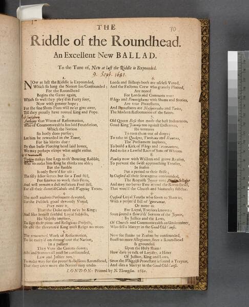 Riddle of the Roundhead. An excellent new ballad. To the tune of, Now at last the riddle is expounded