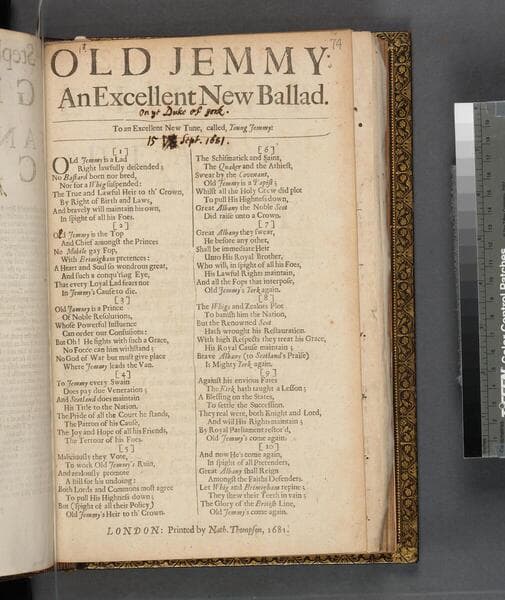 ESTC R26419 ; A ballad on James Scott, Duke of Monmouth;Verse - "Young Jemmy is a lad";Cf. Wing Y102 which has imprint date 1981