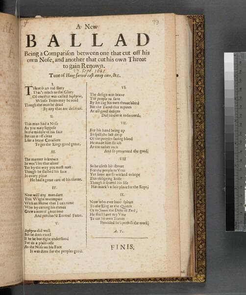 ![The ansvver to the buxome virgin or, the farmer well-fitted, for slighting his first love honest Joan. When men can be so false as he, and waver with the wind, I do protest, I do not jest, they're fitted in their kind. To the tuue [sic] of, The countrey-farmer, or, the buxome virgin](/_next/image?url=https%3A%2F%2Frail.huntington.org%2FIIIF3%2FImage%2F22APN4EQPKQ5%2Ffull%2F%5E360%2C%2F0%2Fdefault.jpg&w=750&q=75)