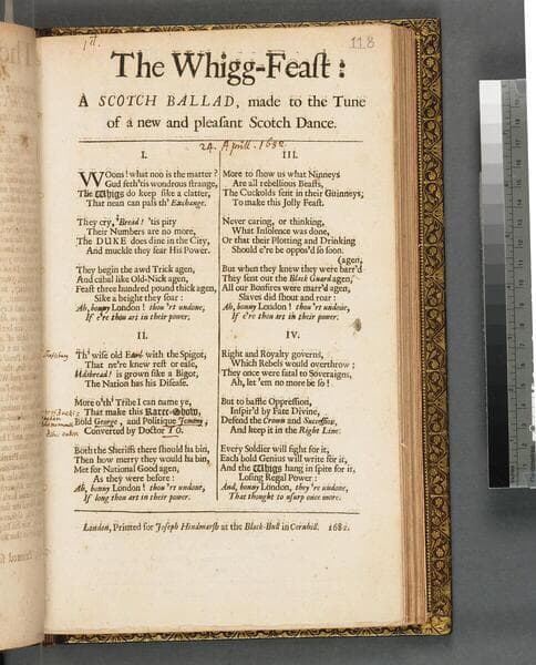 ESTC R4845 ; Verse - "What! still ye Whigs uneasie!" ; A Tory satire on the Whigs