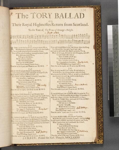 The Tory ballad on Their Royal Highnesses return from Scotland. To the tune of, The Prince of Orange's delight