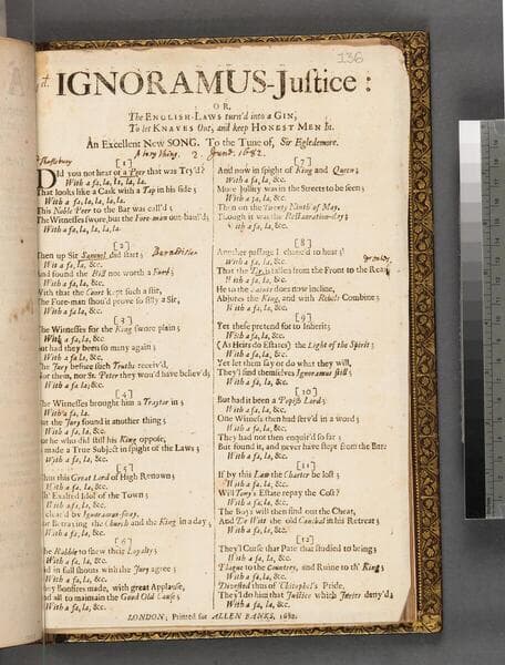 Ignoramus-justice: or, The English-laws turn'd into a gin to let knaves out, and keep honest men in. An excellent new song. To the tune of, Sir Egledemore