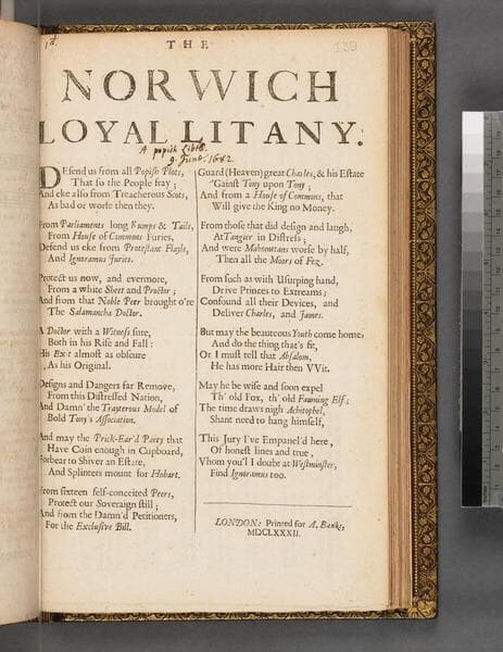 ESTC R21458 ; Verse - "From the tap in the guts of the honourable stump," ; A Tory satire on the Whigs and a reply to: A letany for St. Omers ; Brimighams = Birminghams, a nickname for supporters of the 1680 Exclusion Bill