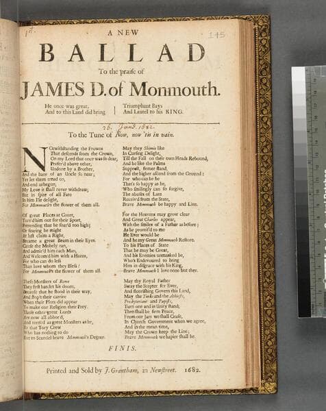 A new ballad to the praise of James D. of Monmouth. He once was great, and to this land did bring triumphant bays and lautel [sic] to his King. To the tune of Now, now 'tis in vain