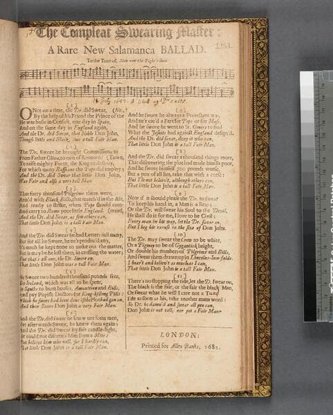 The compleat swearing-master: a rare new Salamanca ballad. To the tune of, Now now the fight's done