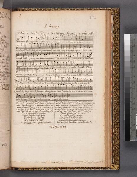- ESTC R374 ; Verse - "Remember ye: wiggs what was formerly done, remember your mischeifs in forty and one, when" ; A Tory satire on the Whigs; Engraved ; Place of publication and actual printer's name from Wing ; Huntington Library copy has Narcissus Luttrell's MS. date: 23 Sept. 1682
