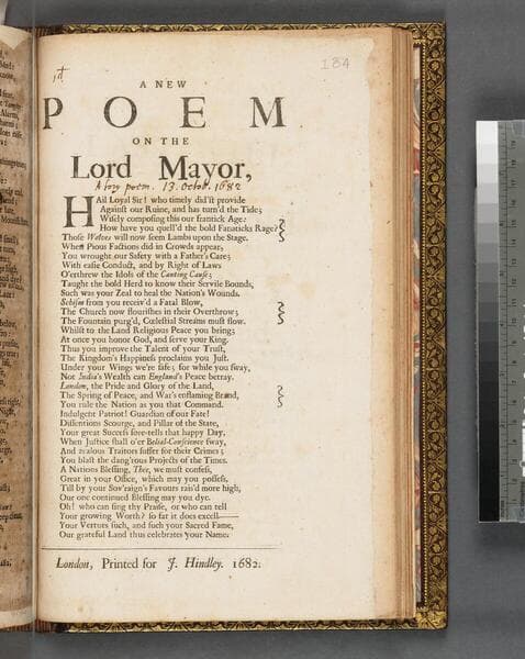 Ryot upon ryot: or, A chant upon the arresting the loyal L. Mayor & sheriffs. Gallants, if you wou'd hear a tale sung o'r, so daring and bold, 'twas never done before: see Londons loyal sheriffs, and Lord Mayor, bearing the sword, arrested in the chair. To the tune of, Burton hall, or London's loyalty