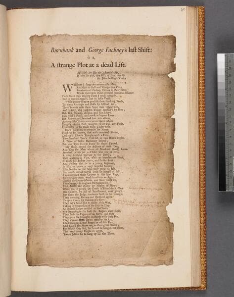 ESTC N49030 ; Satiric verse purporting to be an appeal from one disreputable character to another. George Fachney was an Edinburgh criminal Rob Roy MacGregor a well-known Highland freebooter. ; Printed in two columns.