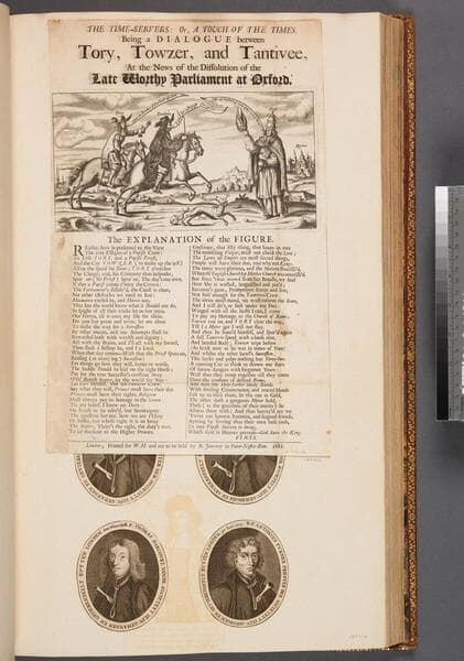 The time-servers: or, A touch of the times. Being a dialogue between Tory, Towzer, and Tantivee, at the news of the dissolution of the late worthy Parliament at Oxford