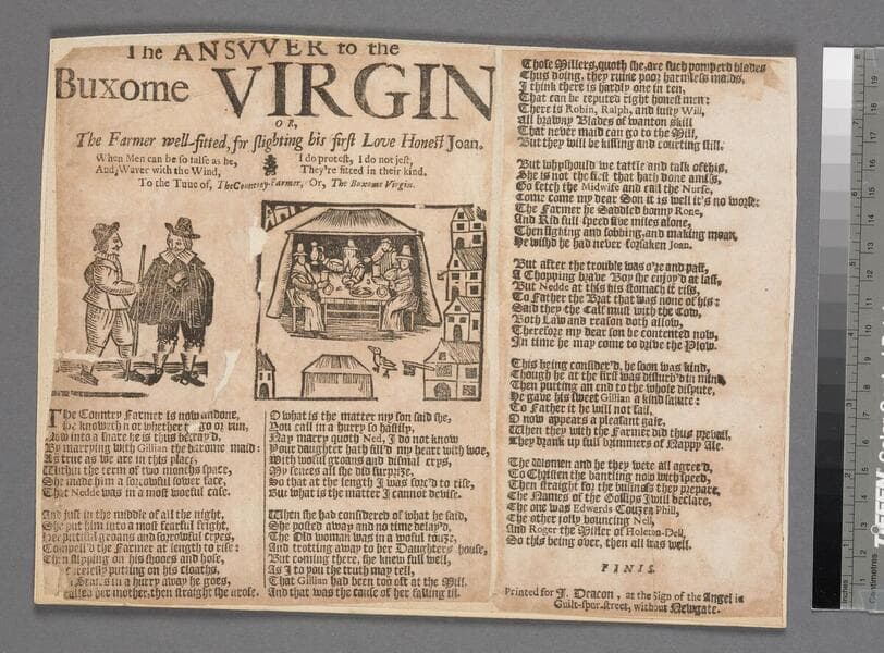 The ansvver to the buxome virgin or, the farmer well-fitted, for slighting his first love honest Joan. When men can be so false as he, and waver with the wind, I do protest, I do not jest, they're fitted in their kind. To the tuue [sic] of, The countrey-farmer, or, the buxome virgin