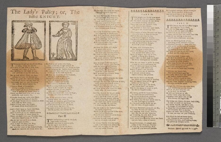 ESTC T50448 ; Verse - "When York and Lancaster made war,". ; One of the woodcuts is that used by John White of Newcastle. ; The three woodcuts are: a crowned king with a ruff, standing the second a sour-looking 'Elizabetha Regina' the third woodcut depicts an ermined and crowned king the first woodcut (king with ruff) appears in ballads printed by John White of Newcastle (a search for the other two woodcuts in White ballads not undertaken) ; Printed in five columns with the woodcuts and the title above the first three columns the columns, except the third and fourth, are separated by plain rules. ; Imprint conjectured by cataloguer.