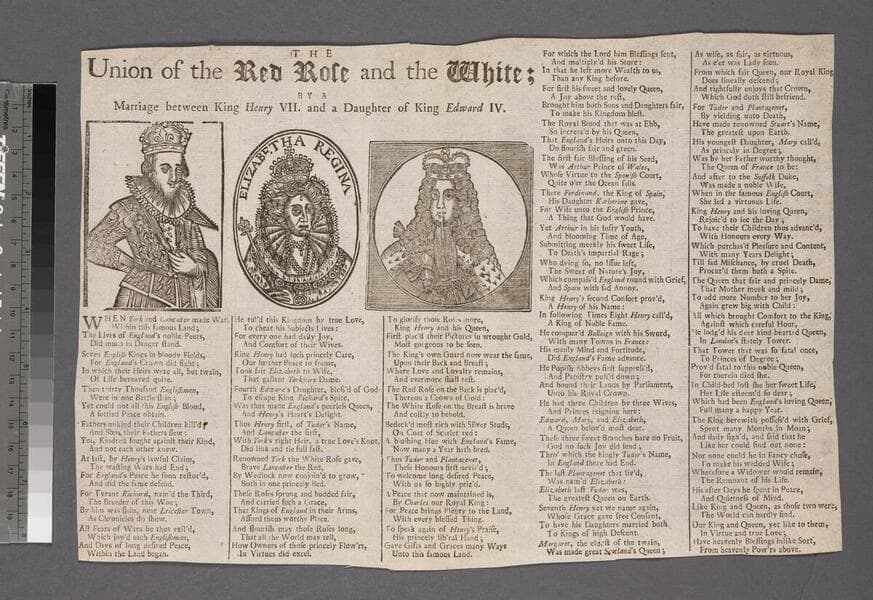 The union of the red rose and the white by a marriage between King Henry VII. and a daughter of King Edward IV