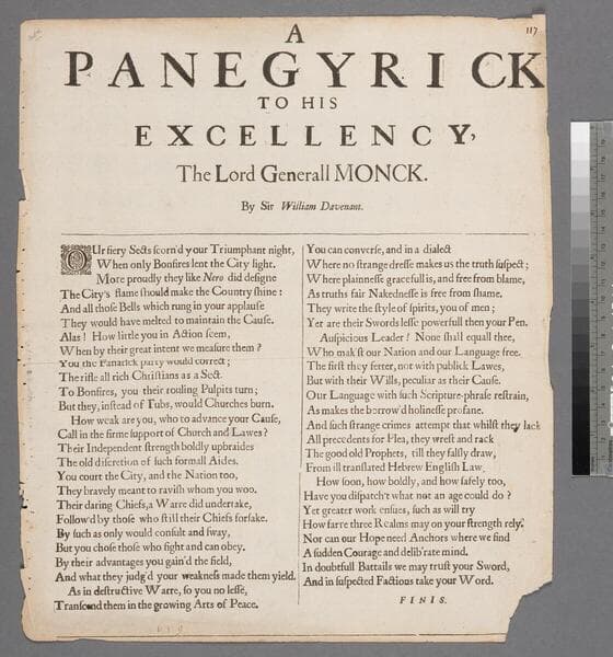 A panegyrick to his excellency, the Lord Generall Monck. / By Sir William Davenant
