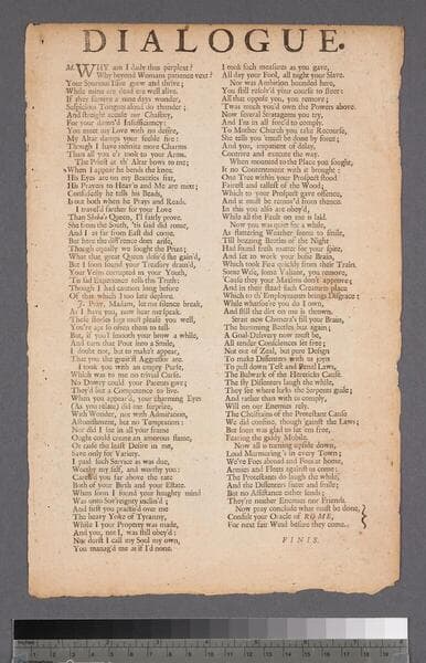 Dialogue. M. Why am I daily thus perplext? Why beyond womans patience vext?