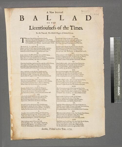 A new satyricall ballad of the licentiousness of the times. To the tune of, The blinde beggar of Bednall-Green