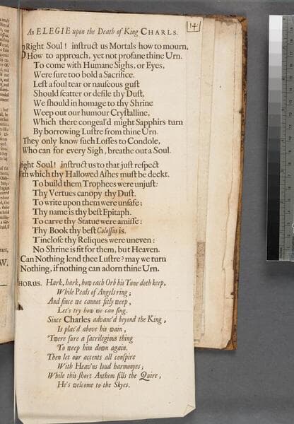 An elegie on the death of that most noble and heroick knight, Sir Charles Lucas, governour of Colchester, and generall of the Essexian forces, who was murthered by the excellent rebell Fairfax, the day on which Colchester was surrendered, August 27. 1648
