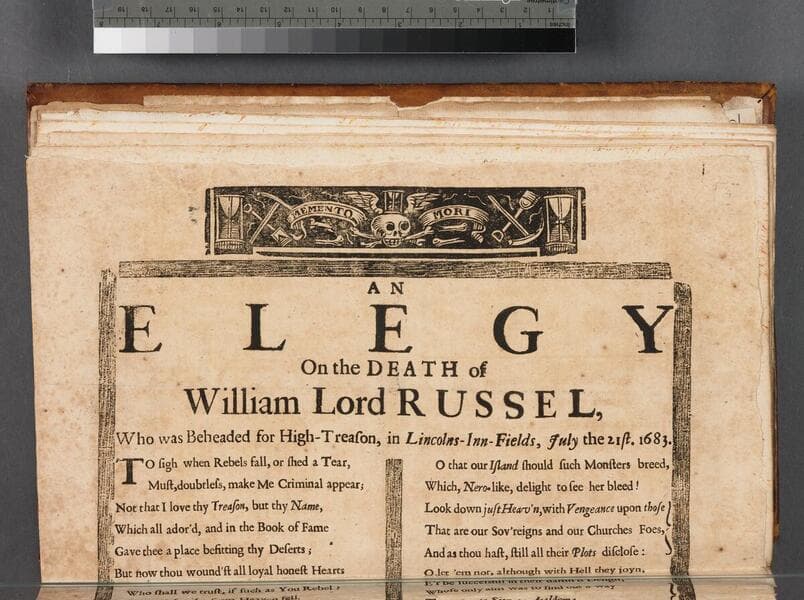 An elegy on the death of the Lord Russel, who was beheaded in Lincolns-Inn-Fields, on Saturday the 21st. of July, 1683