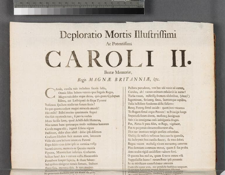 Deploratio mortis illustrissimi ac potentissimi Caroli II. beatae memoriae, Regis Magnae Britanniae, &c