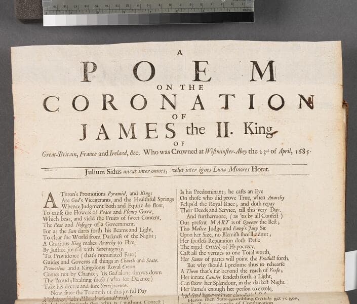 A poem on the coronation of James the II King of Great-Britain, France and Ireland, &c. Who was crowned at Wistminster-Abey [sic] the 23th of April, 1685