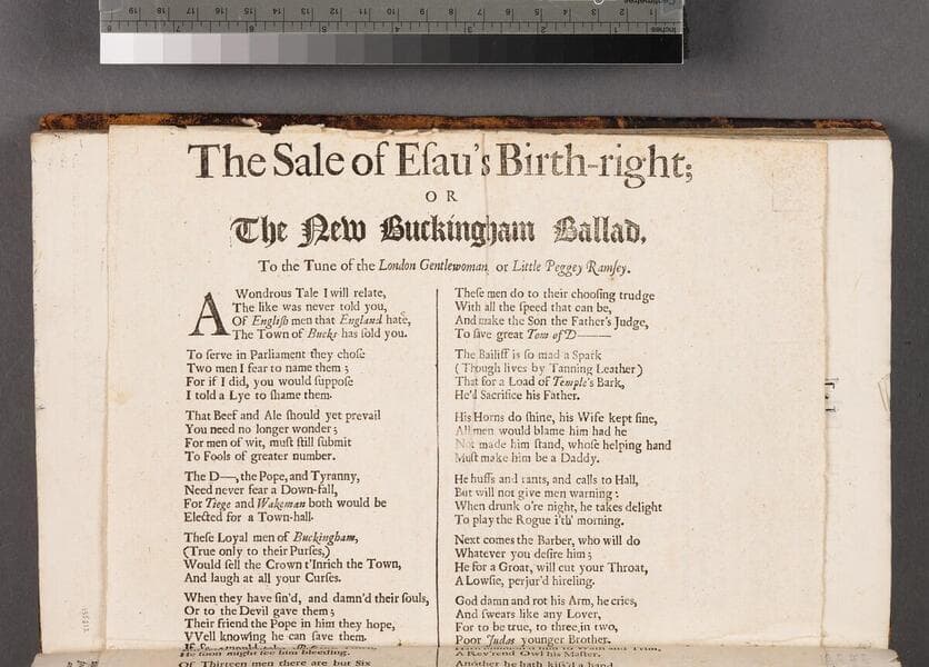 The sale of Esau's birth-right or The New Buckingham ballad, to the tune of the London gentlewoman, or Little Peggey Ramsey