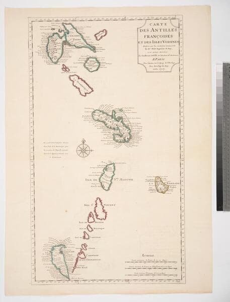 La Maretinique par les Ingenieurs Snglais lorsqui'ls en étoient possesseurs D'apres les Observations Astronomiques de M.M. de Verdun, de Borda & Pingré, Avec les Routes. Par Jefferys. A Paris, chez Charles Dien, Rue du Font St. Jacques au College de Mtre. Gervais. 1799