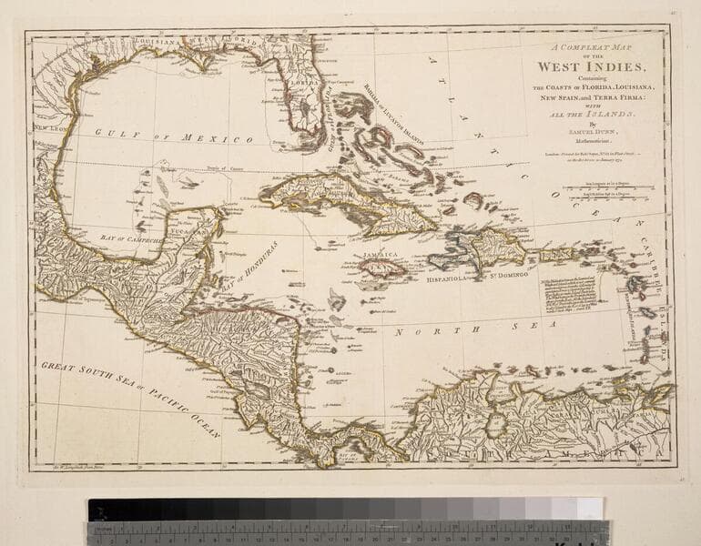 Compleat Map of the West Indies, Containing the Coasts of Florida, Louisiana, New Spain, and Terra Firma: with all the Islands. By Samuel Dunn, Mathematician