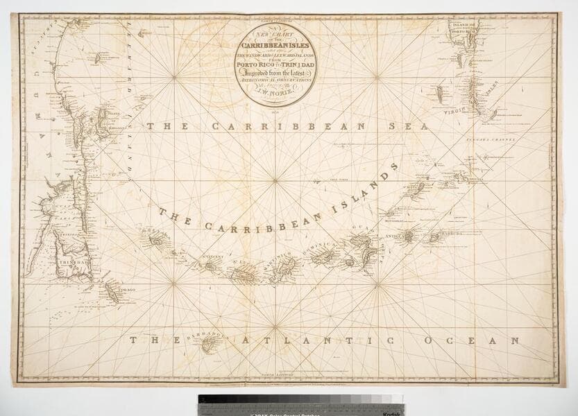 New Chart of the Carribbean Isles called also The Windward & Leeward Islan ds from Porto Rico to Trinidad Improved from the latest Astronomical Observations & Surveys, By J. W. Norie, Hydrographer, &c.Engraved by J. Stephenson 1828