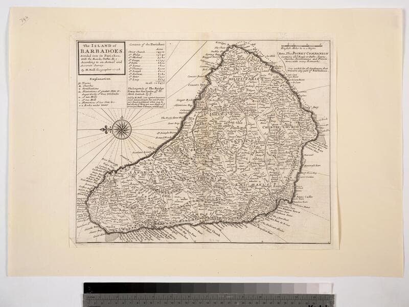 Island of Barbadoes. Divided into its Parishes, with the roads, paths. &c. According to an Actual and Accurate Survey. By H. Moll Geographer 1728