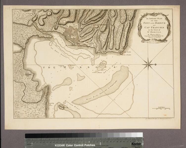 Authentic Plan of the Tolwn and Harbour of Cap-Francois in the Isle of St. Domingo. By Thomas Jefferys Geographer to His Royal Highness the Prince of Wales