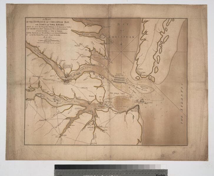 Plan of the Entrance of Chesapeak [sic] Bay, with James and York Rivers wherein is shown the Respective Positions (in the beginning of October) 1. of the British Army Commanded by Lord Cornwallis, 2. of the American and French Forces under General Washington, 3. and of the French Fleet under Count de Grasse