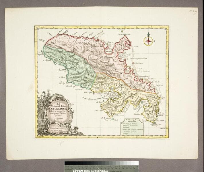 Het Westindisch Eiland Martenique Volgens de nieuwste Waar nemmingen in Kaart gebragt. t Amsterdam by I. Tirion