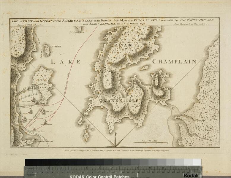 Attack and Defeat of the American Fleet under Benedict Arnold, by the King's Fleet Commanded by Captn. Thos. Pringle, upon Lake Champlain, the 11th of October, 1776