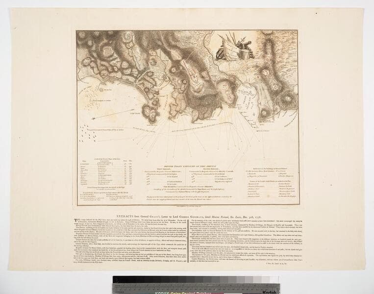 Kashnor notes, "James Cook, afterwards famous as Captain Cook, the explorer, sailed as an able seaman in the Eagle under the command of Capt. Palliser, and his first advancement, as Master of the Mercury was due to the latter's interest in him, and perception of genius." Has submaps and views. Submaps: Port aux Basque; St. Peters Island; Great Jervis Harbour;Harbour Briton; Harbour of St. Lawrence. Views: Cape Ray; Mountain of the Red Hat.. Prime meridian: GM. Relief: no. Graphic Scale: Leagues. Projection: Plane. Printing Process: Copper engraving. Other Features: VignettesSub-maps. Verso Text: Ms nore: 547.