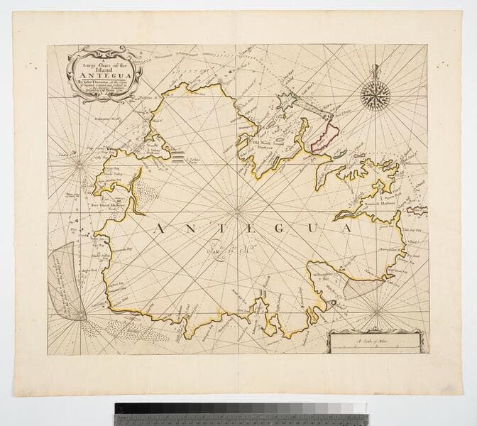 Kashnor notes, "An exceedingly rare plan of Newport, and the best issued in the eighteenth century. It was issued for use of mariners during the Revolution. Coloured copies of this plan are exceedingly rare. Tables of Wharfs, Public Buildings, Streets. "14 upper right." Relief: hachures. Graphic Scale: Feet. Projection: Plane. Watermark: JB Pate. Printing Process: Copper engraving. Other Features: Art Work. Verso Text: MS note: 999.