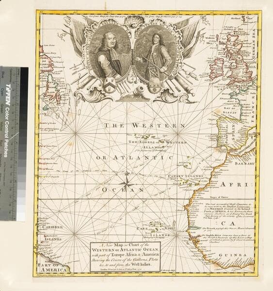 New Map or Chart of the Western or Atlantic Ocean, with part of Europe Africa & America: Shewing the Course of the Galleons, Flota &c. to and from the West Indies