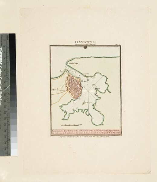 Havanna.Havanna, a fine City & Harbour on the north-west side of the Island of Cuba in the Gulf of Mexico, the rendezvous for the Galleons on their return to Spain. Latitude 25.12 N. Longitude 82.13 W of London