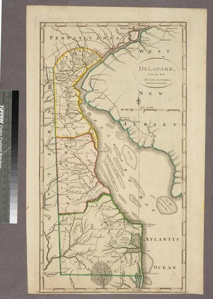 Kashnor notes, "Showing also parts of the State of Delaware, Pennsylvania and New York. A map valuable for the old roads shown." Kashnor dates as [1818]. Prime meridian: Philadelphia. Relief: pictorial. Graphic Scale: Miles. Projection: Cylindrical. Printing Process: Copper engraving. Verso Text: MS note: 463.