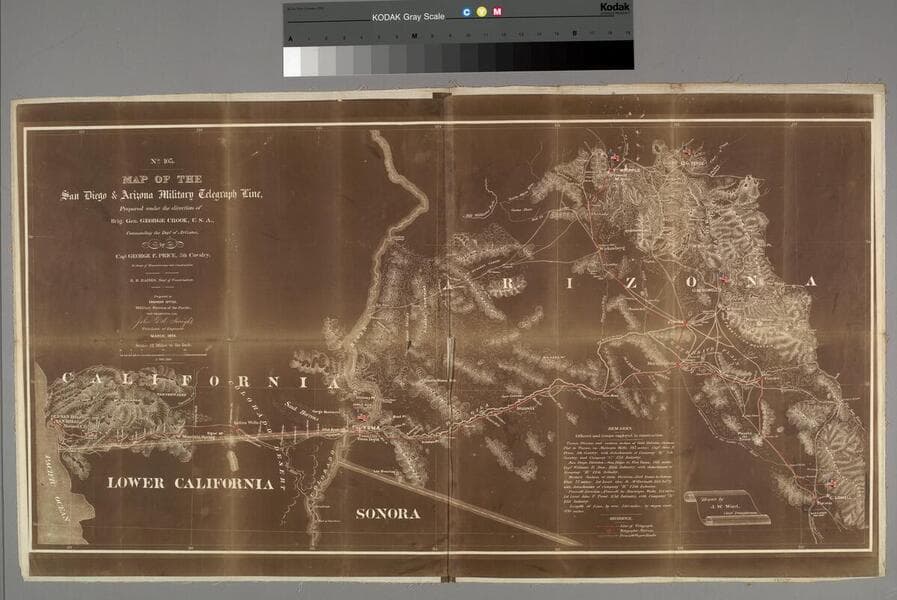 Map of the San Diego & Arizona Military Telegraph Line, Prepared under the direction of Brig. Gen. George Crook, U.S.A., Commanding the Dept. of Arizona, by Capt. George F. Price, 5th Cavalry, In charge of Reconnaissance and Co.; Prepared in Engineer Office, Military Division of the Pacific, San Francisco, Cal., John G.D. Knight, First Lieut. of Engineers, March, 1874