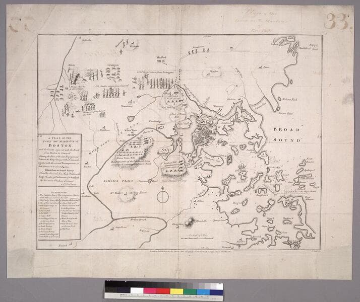 ![Seat of the War, in New England, by an American Volunteer [Submap]: Plan of the Town of Boston with the Attack on Bunkers-Hill in the Peninsula of Charlestown, the 17th. of June 1775. With the Marches of the Several Corps Sent by the Colonies. Towards Boston. with the Attack on Bunkers = Hill](/_next/image?url=https%3A%2F%2Frail.huntington.org%2FIIIF3%2FImage%2F22APN4KOYJI7%2Ffull%2F%5E360%2C%2F0%2Fdefault.jpg&w=750&q=75)