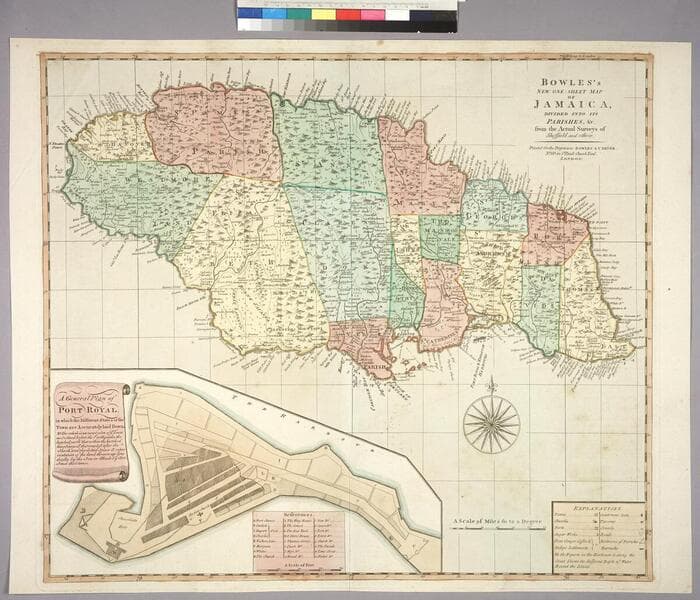 Bowles's New One-Sheet Map of Jamaica, Divided into its Parishes, &c. from the Actual Surveys of Sheffield and others