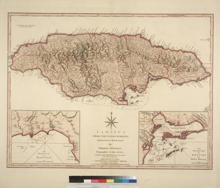 Jamaica from the latest surveys; Improved and Engraved by Thomas Jefferys Geographer to the King