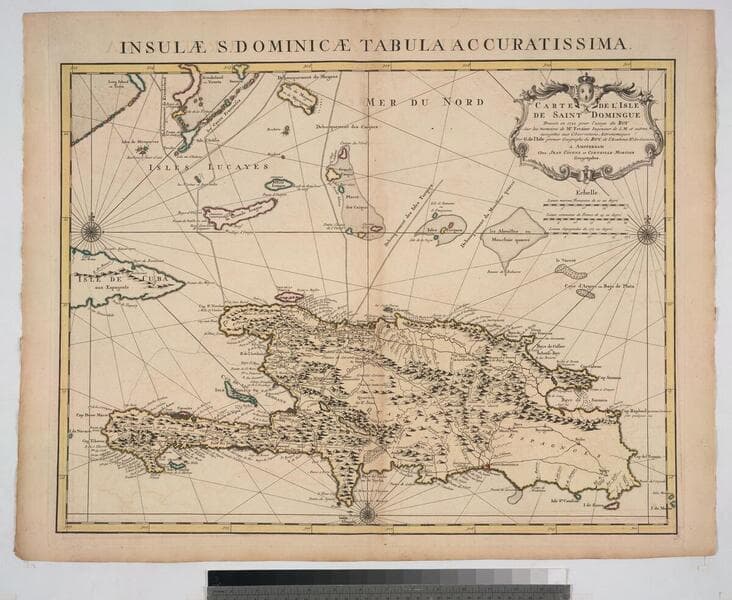 Carte de l'Isle de Saint Domingue Dresée en 1722 por le l'usage du Roy Sur les memoires de Mr. Frezier Ingenieur de. S. M. el autres assujetis aux Observations Astronomiques. Par G. Delisle premier Geographe du Roy, de l'Academie Rle. des Sciences. A Paris Chex l'Auteur sur le Quay de l'Horloge