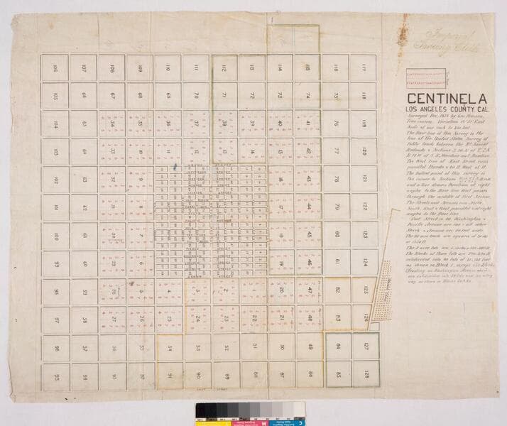 Plat of the Rancho Aguaje de la Centinela finally confirmed to Bruno Abila in the County of Los Angeles California