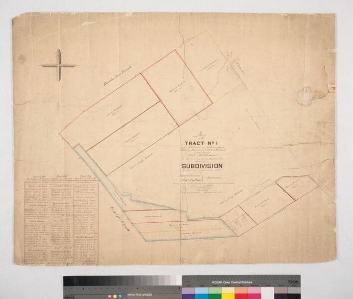 Map of the Tracts of the Land No. 1 & 2 of the allotment of Andrés, José Antonio, Rafael & Cristobal Machado in the Rancho La Ballona in the County of Los Angeles Cal