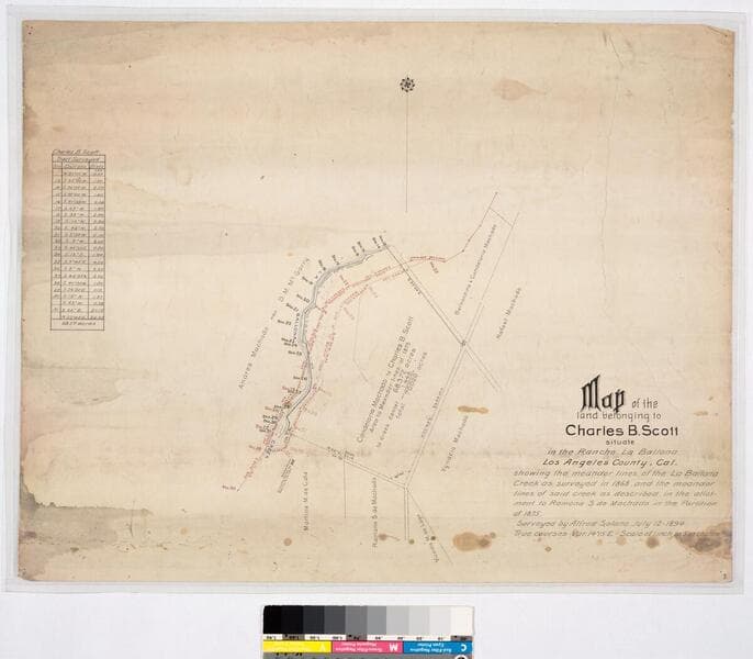 Map of the Land belonging to Charles B. Scott.; showing the meander lines of the La Ballona Creek