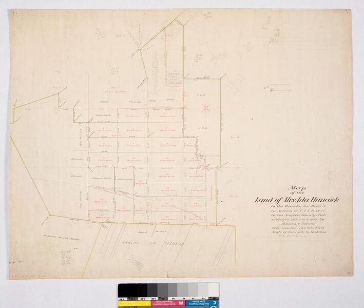 Map of that part of Rancho La Brea which is situate in Sec.s 3 & 10 T. 1S. R.14W.; belonging to Mrs. Ida Hancock